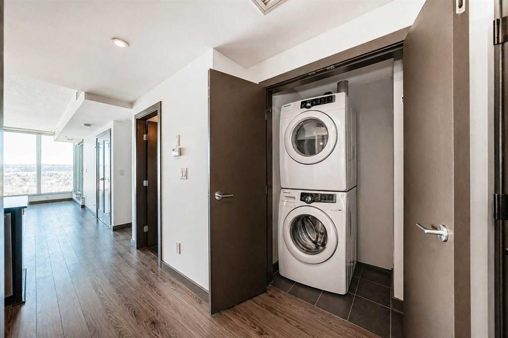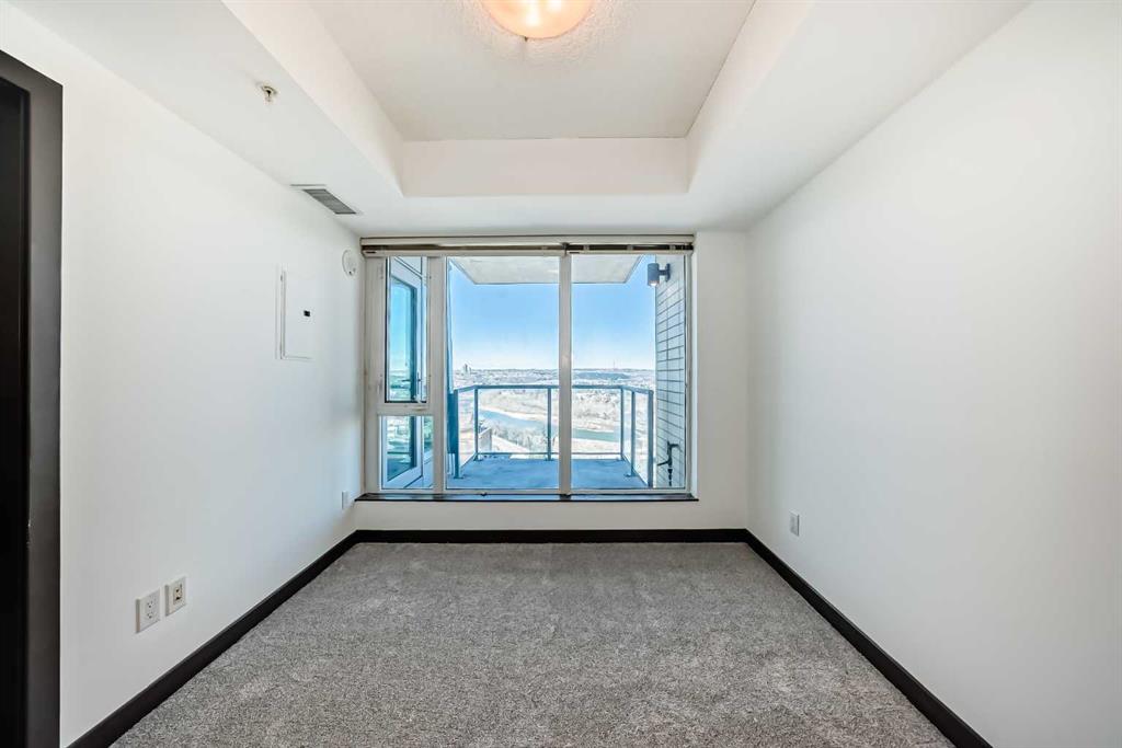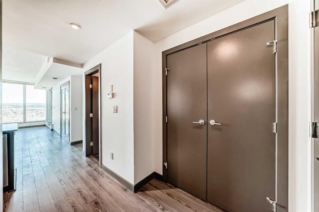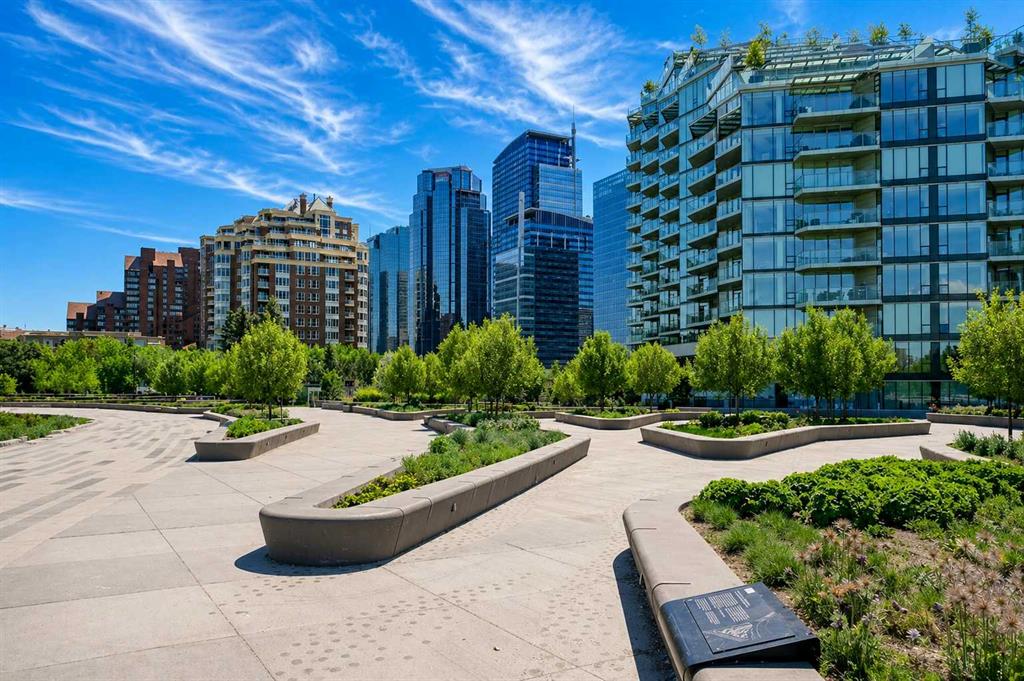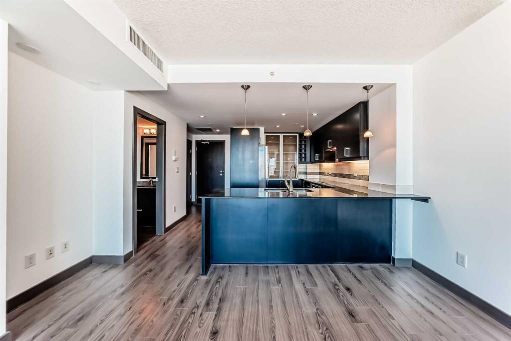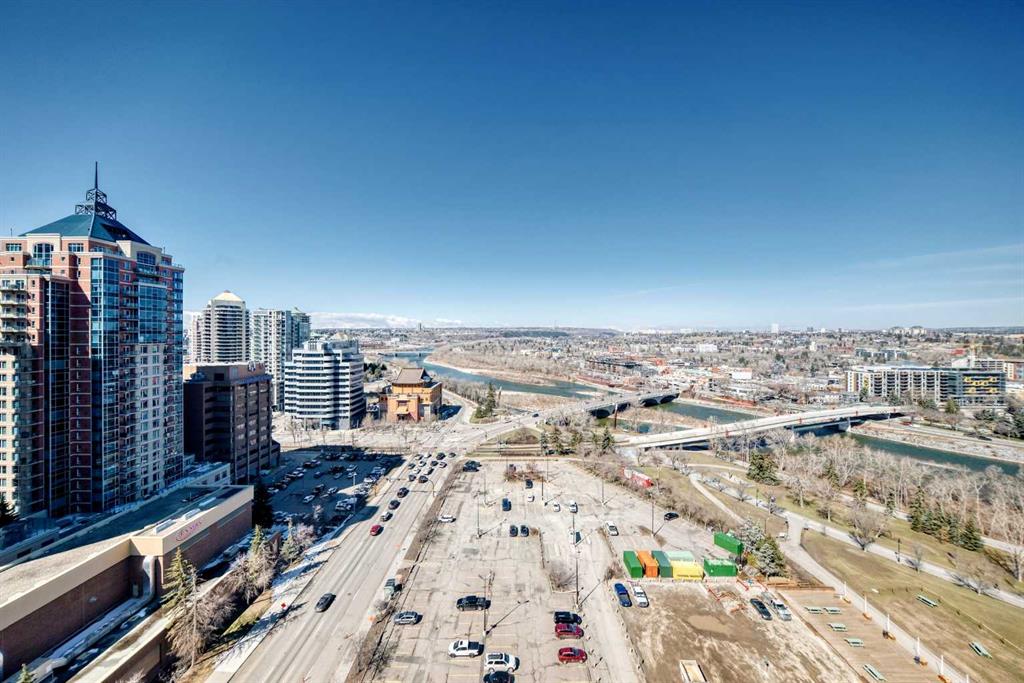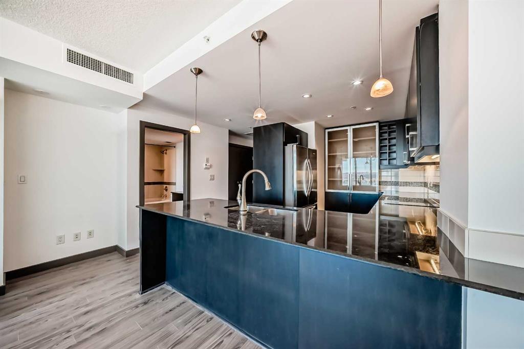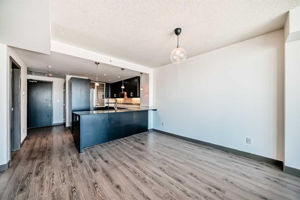 Welcome to Solaire in Eau Claire. Set on the 19th floor, this 1 bedroom, 1 bathroom home offers a bright, comfortable space with wide open west-facing views that stretch to the mountains and over the Bow River. Floor-to-ceiling windows bring in plenty of natural light and make the most of the view, while the open layout keeps the kitchen, dining, and living areas connected and easy to enjoy. Whether you’re hosting a few people or having a quiet night in, the space feels natural and functional. The kitchen is clean and modern, finished with quality cabinetry, streamlined surfaces, and Bosch appliances that are built to perform without overcomplicating things. The living area features a gas fireplace that adds warmth and makes the space feel inviting year-round. The bedroom is set behind glass French doors, giving it a sense of openness while still offering privacy. A walk-through closet leads into a well-designed full bathroom, creating a simple, practical flow. Up on the 19th floor, the views and natural light are a standout—especially in the evening when the sunsets roll in. This home also includes underground parking, adding everyday convenience in a central location. Living here means you’re steps from the Bow River pathways, green spaces, cafés, and restaurants that make Eau Claire such a great place to be. Clean design, a solid layout, and a view you’ll appreciate every day.