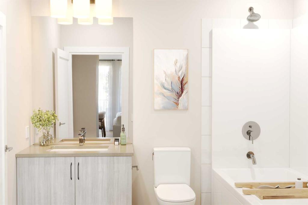 ROOFTOP PATIO • MOUNTAIN VIEWS • LOW CONDO FEES — This pre-construction 2-bedroom, 2-bathroom condo offers nearly 1,000 sq. ft. of practical, well-designed living space, ideal for first-time buyers or investors seeking strong value. Featuring 10+ ft. ceilings, large windows, and modern quartz countertops, the home provides a bright, functional layout with beautiful mountain views. Scheduled for Summer 2028 possession, the unit includes titled underground parking and private storage, along with access to a rooftop patio with BBQ stations and a fire lounge, plus convenient amenities such as a dog park and pet wash station. Located close to restaurants, shops, and everyday essentials, this community is designed for comfortable living. With low condo fees and flexible deposit options starting from 5% (as low as $2,500 upfront), this is an excellent opportunity to secure a home at today’s prices with a manageable entry point.