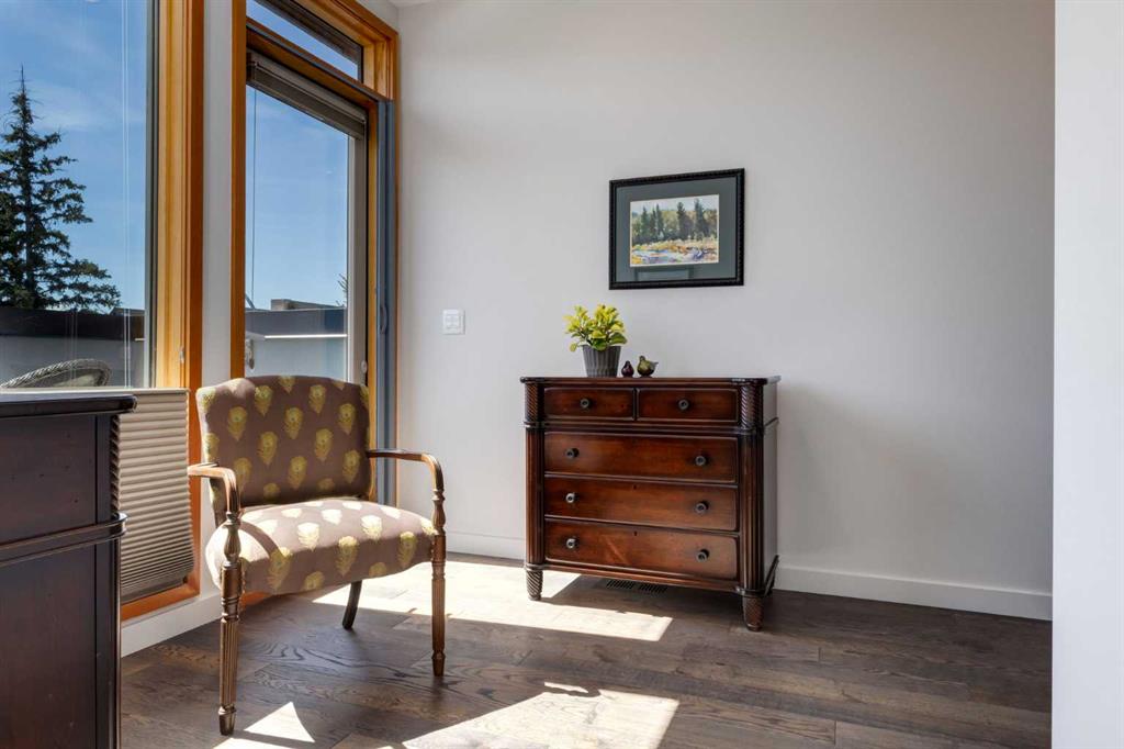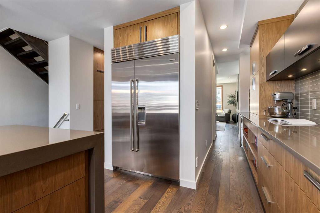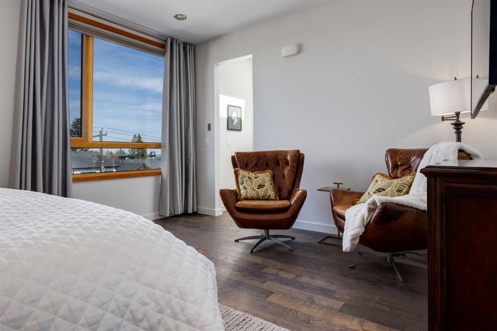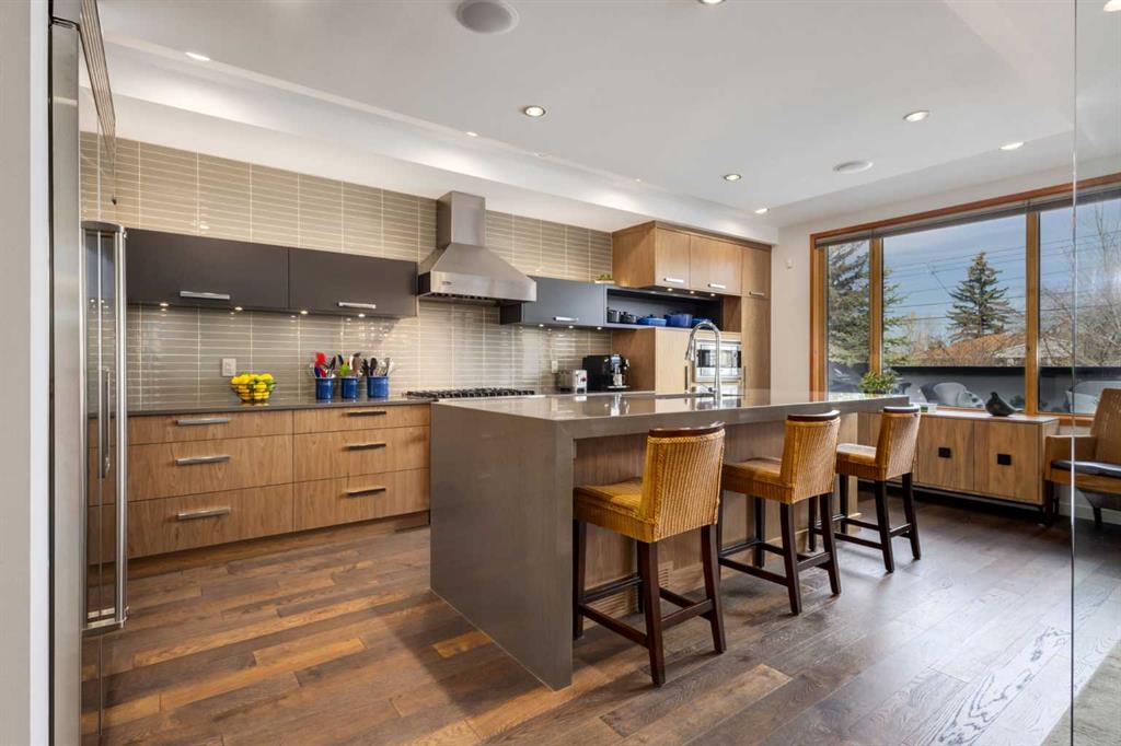 OPEN HOUSE SATURDAY MAY 2ND - 12PM TO 3PM. A rare opportunity to own an exceptional four-level residence with private elevator access in the heart of South Calgary, moments from vibrant Marda Loop. Offering over 3,500 sq ft of developed living space, this remarkable home blends refined design, advanced technology, and everyday comfort with rare long-term livability. Striking street appeal and a private front courtyard create a memorable first impression. Inside, the main floor is bright and beautifully appointed, anchored by a sun-filled south-facing living room with expansive windows and a polished designer tile gas fireplace. Rich hardwood flooring, custom millwork, and built-in media speakers add warmth and sophistication throughout. The kitchen is exceptionally equipped with a Brigade Professional six-burner gas range, additional wall oven, microwave, Sub-Zero side-by-side refrigerator with water and ice dispenser, two Fisher & Paykel dishwasher drawers, and a Brigade Professional wine fridge. Abundant cabinetry, expansive prep space, and a generous island with added storage make this kitchen as functional as it is elegant. The adjoining dining area opens directly onto the private rear terrace for effortless indoor-outdoor entertaining. A powder room with heated floors completes the main level. A striking open-riser staircase with glass detailing connects the home while allowing natural light to move freely throughout. The second level offers two spacious bedrooms, including one with custom built-ins, an integrated desk, cabinetry, and Murphy bed—ideal as a guest room, office, or den. The second enjoys access to a private patio. A five-piece bath with heated floors, double vanity, separate shower, and built-in storage serves this floor. The dedicated laundry room includes a Samsung washer and dryer, custom cabinetry, stainless steel sink with integrated washboard, and plenty of storage. Occupying the entire upper floor, the primary suite is a private retreat featuring a spacious bedroom, terrace, lounge area, beverage station with sink, dishwasher, and beverage fridge, plus a custom walk-in dressing room. The elegant ensuite offers heated floors, deep soaker tub, oversized glass shower, private water closet, and refined finishes throughout. A large skylight brings in streams of light throughout the day. The fully developed lower level includes a large family/media room with built-in speakers, a full four-piece bath with heated floors, and direct access to the mudroom and attached double garage with in-floor heat, epoxy flooring, and slat-wall storage. Additional highlights include a fully integrated Control4 smart home system managing lighting, climate, security, exterior cameras, and entertainment. Perfectly positioned in one of Calgary’s most desirable inner-city neighborhoods, steps to cafés, restaurants, boutiques, parks, and amenities, this extraordinary residence offers sophisticated, future-ready living without compromise.