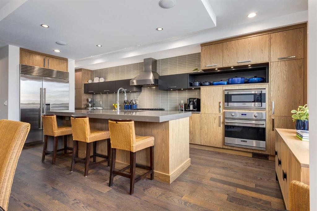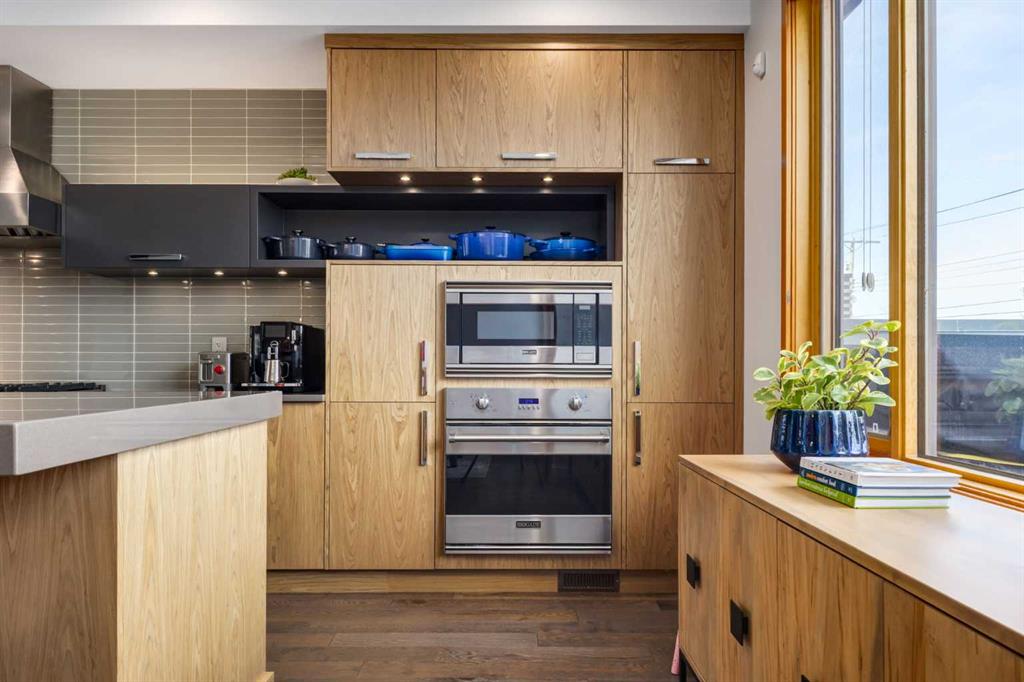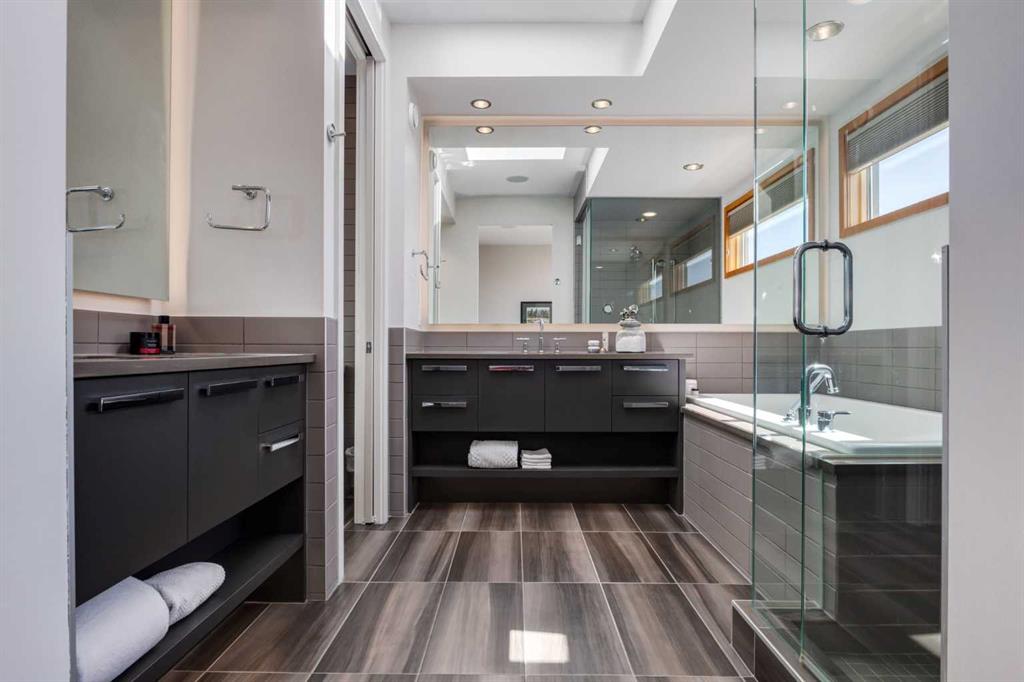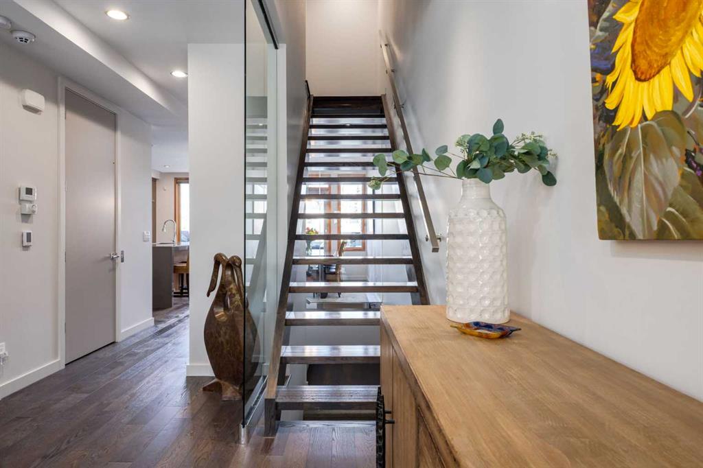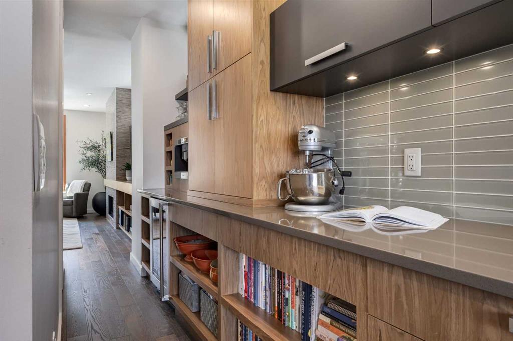OPEN HOUSE SATURDAY MAY 2ND - 12PM TO 3PM. A rare opportunity to own an exceptional four-level residence with private elevator access in the heart of South Calgary, moments from vibrant Marda Loop. Offering over 3,500 sq ft of developed living space, this remarkable home blends refined design, advanced technology, and everyday comfort with rare long-term livability. Striking street appeal and a private front courtyard create a memorable first impression. Inside, the main floor is bright and beautifully appointed, anchored by a sun-filled south-facing living room with expansive windows and a polished designer tile gas fireplace. Rich hardwood flooring, custom millwork, and built-in media speakers add warmth and sophistication throughout. The kitchen is exceptionally equipped with a Brigade Professional six-burner gas range, additional wall oven, microwave, Sub-Zero side-by-side refrigerator with water and ice dispenser, two Fisher & Paykel dishwasher drawers, and a Brigade Professional wine fridge. Abundant cabinetry, expansive prep space, and a generous island with added storage make this kitchen as functional as it is elegant. The adjoining dining area opens directly onto the private rear terrace for effortless indoor-outdoor entertaining. A powder room with heated floors completes the main level. A striking open-riser staircase with glass detailing connects the home while allowing natural light to move freely throughout. The second level offers two spacious bedrooms, including one with custom built-ins, an integrated desk, cabinetry, and Murphy bed—ideal as a guest room, office, or den. The second enjoys access to a private patio. A five-piece bath with heated floors, double vanity, separate shower, and built-in storage serves this floor. The dedicated laundry room includes a Samsung washer and dryer, custom cabinetry, stainless steel sink with integrated washboard, and plenty of storage. Occupying the entire upper floor, the primary suite is a private retreat featuring a spacious bedroom, terrace, lounge area, beverage station with sink, dishwasher, and beverage fridge, plus a custom walk-in dressing room. The elegant ensuite offers heated floors, deep soaker tub, oversized glass shower, private water closet, and refined finishes throughout. A large skylight brings in streams of light throughout the day. The fully developed lower level includes a large family/media room with built-in speakers, a full four-piece bath with heated floors, and direct access to the mudroom and attached double garage with in-floor heat, epoxy flooring, and slat-wall storage. Additional highlights include a fully integrated Control4 smart home system managing lighting, climate, security, exterior cameras, and entertainment. Perfectly positioned in one of Calgary’s most desirable inner-city neighborhoods, steps to cafés, restaurants, boutiques, parks, and amenities, this extraordinary residence offers sophisticated, future-ready living without compromise.