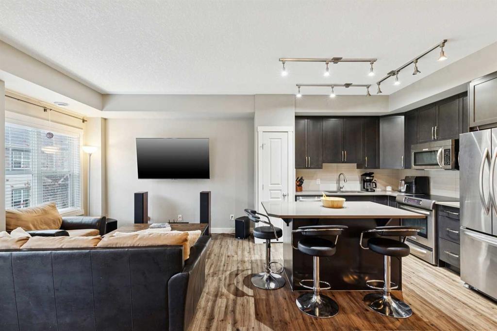 Welcome to this well-cared-for bungalow-style townhouse located in the lively, family-oriented community of McKenzie Towne. Offering 2 bedrooms and a thoughtfully designed layout, this home is ideal for first-time buyers, those looking to downsize, or investors seeking a turnkey property. Inside, you’ll find a bright and inviting open-concept living area that’s perfect for everyday living and entertaining. The contemporary kitchen is equipped with upgraded cabinetry, quartz countertops, stainless steel appliances, and a functional island with seating—great for casual dining or gathering with guests. The living space extends effortlessly to a sunny, south-facing balcony, creating a perfect spot to relax. Durable luxury vinyl plank flooring runs throughout the home, combining style with easy maintenance. Central air conditioning adds comfort during the warmer months. Both bedrooms are generously sized, including a primary suite with a walk-in closet. A modern four-piece bathroom and convenient in-suite laundry complete the main level. The lower level offers a practical mudroom and additional storage space, while the attached single garage provides secure parking and extra room for your belongings. Enjoy a walkable lifestyle just steps from High Street, where you’ll find a variety of shops, restaurants, cafés, and everyday amenities. Situated in a pet-friendly complex, this home delivers comfort, convenience, and a fantastic location—everything you need for modern living in one of Calgary’s most popular communities. Book your private showing today and see all that this home has to offer.